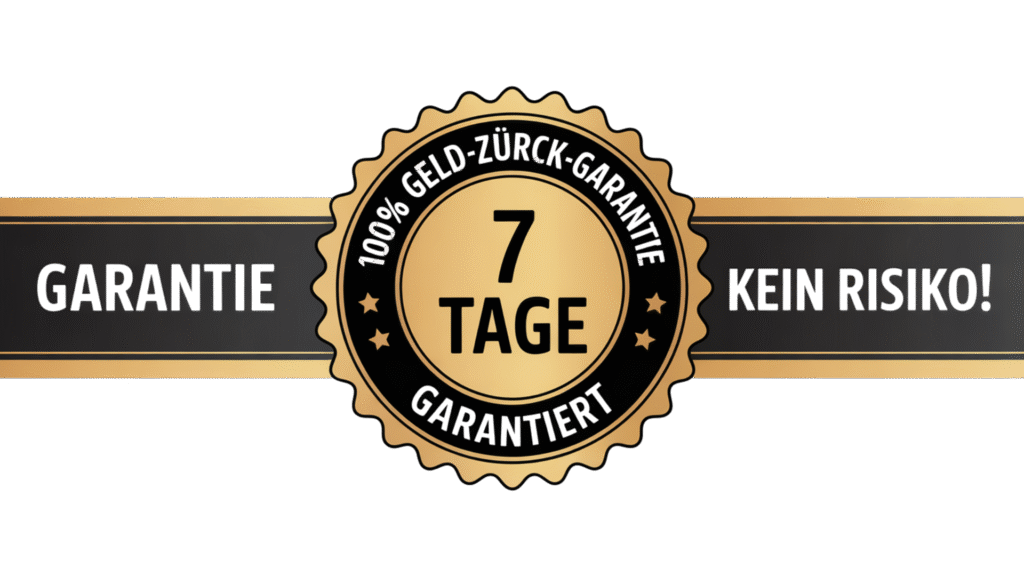 Wenn du innerhalb von 7 Tagen nicht völlig zufrieden bist, erhältst du dein Geld ohne Fragen zurück.